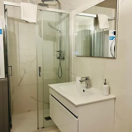 En el Apartamento Skyline Heaven - Fantastic View - Pool - Garage se proporciona una ducha a ras de suelo para mejorar tu comodidad.